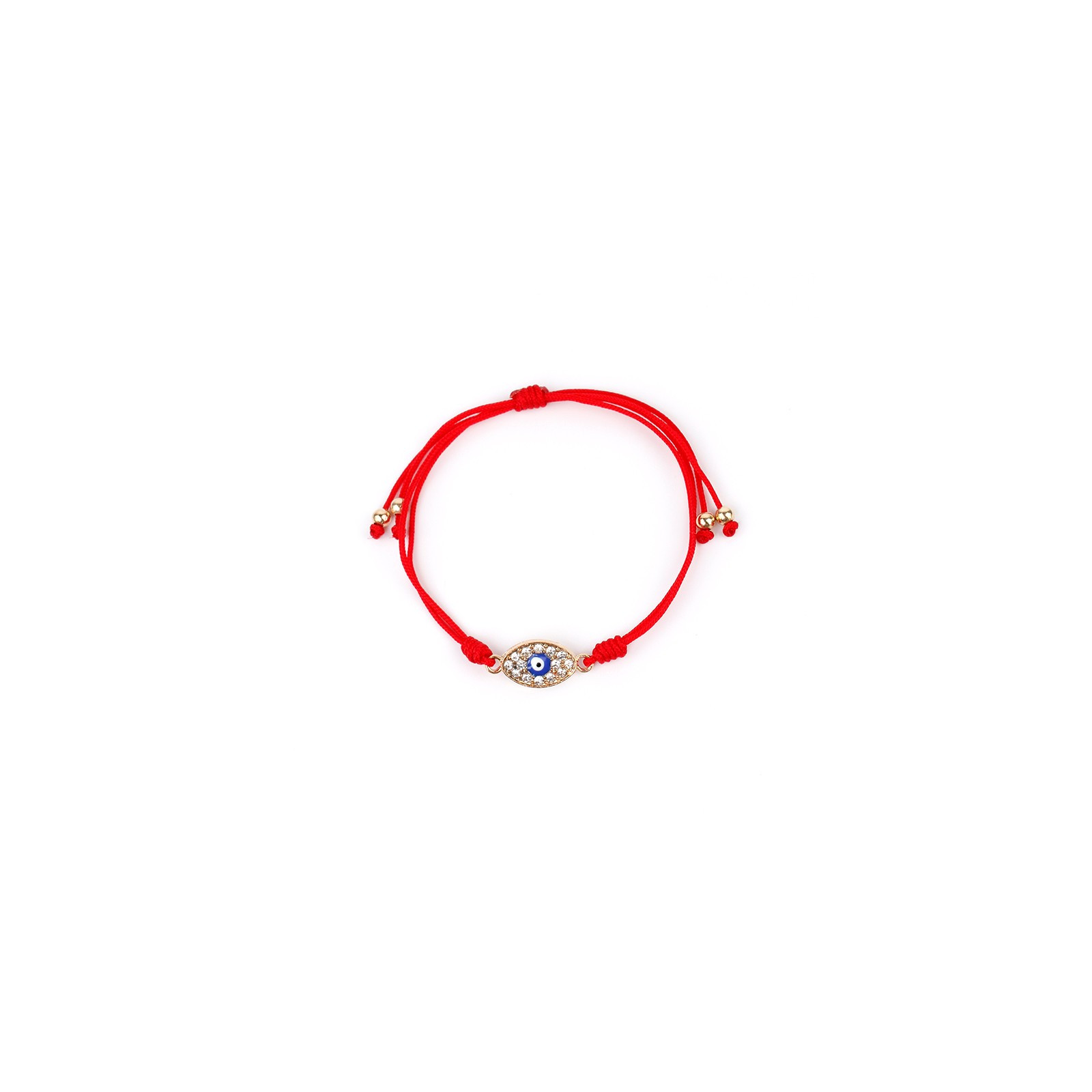 Pulsera de hilo con cierre en macramé y dije exclusivo de strass dorado.