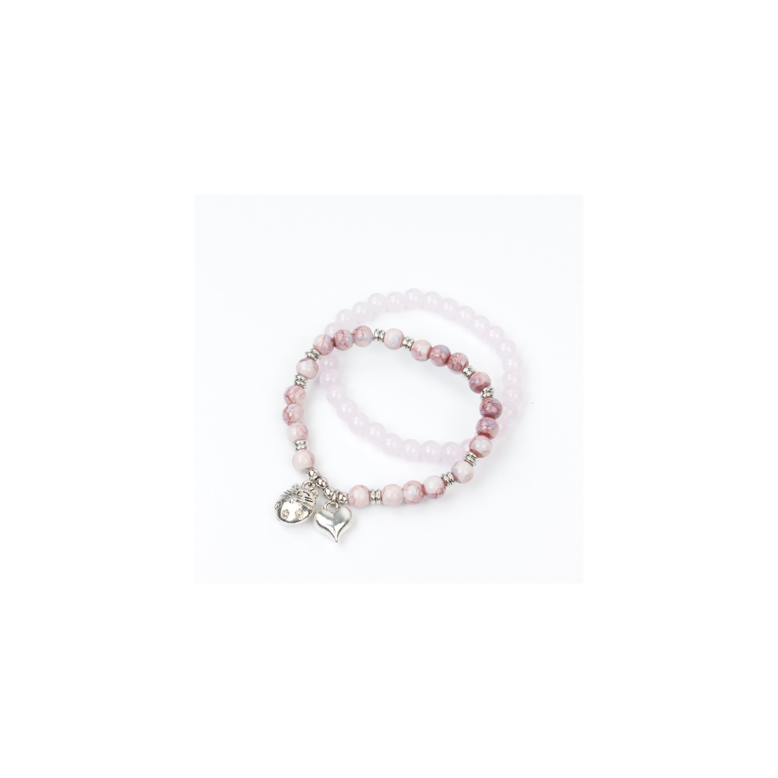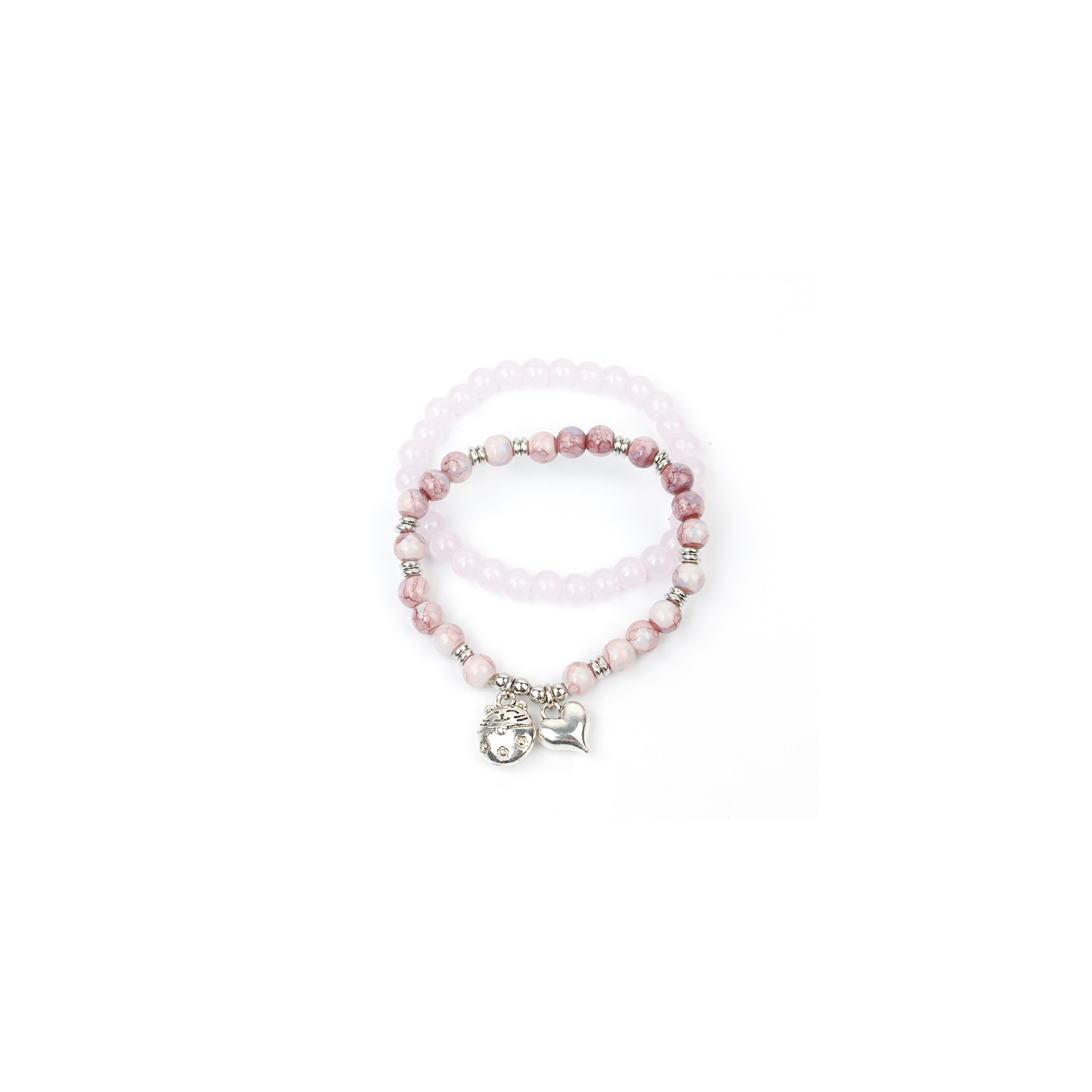 Set de dos pulseras elásticas de piezas de vidrio con dijes exclusivos níquel.