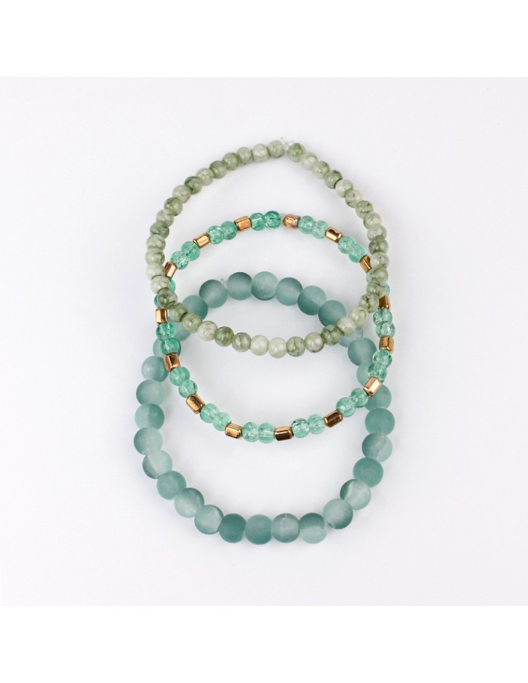 Set de tres pulseras elásticas de bolitas de vidrio.