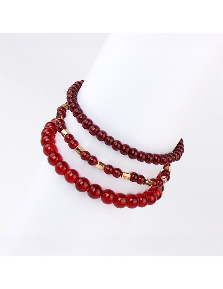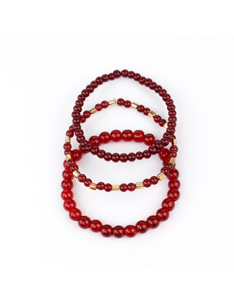 Set de tres pulseras elásticas de bolitas de vidrio.