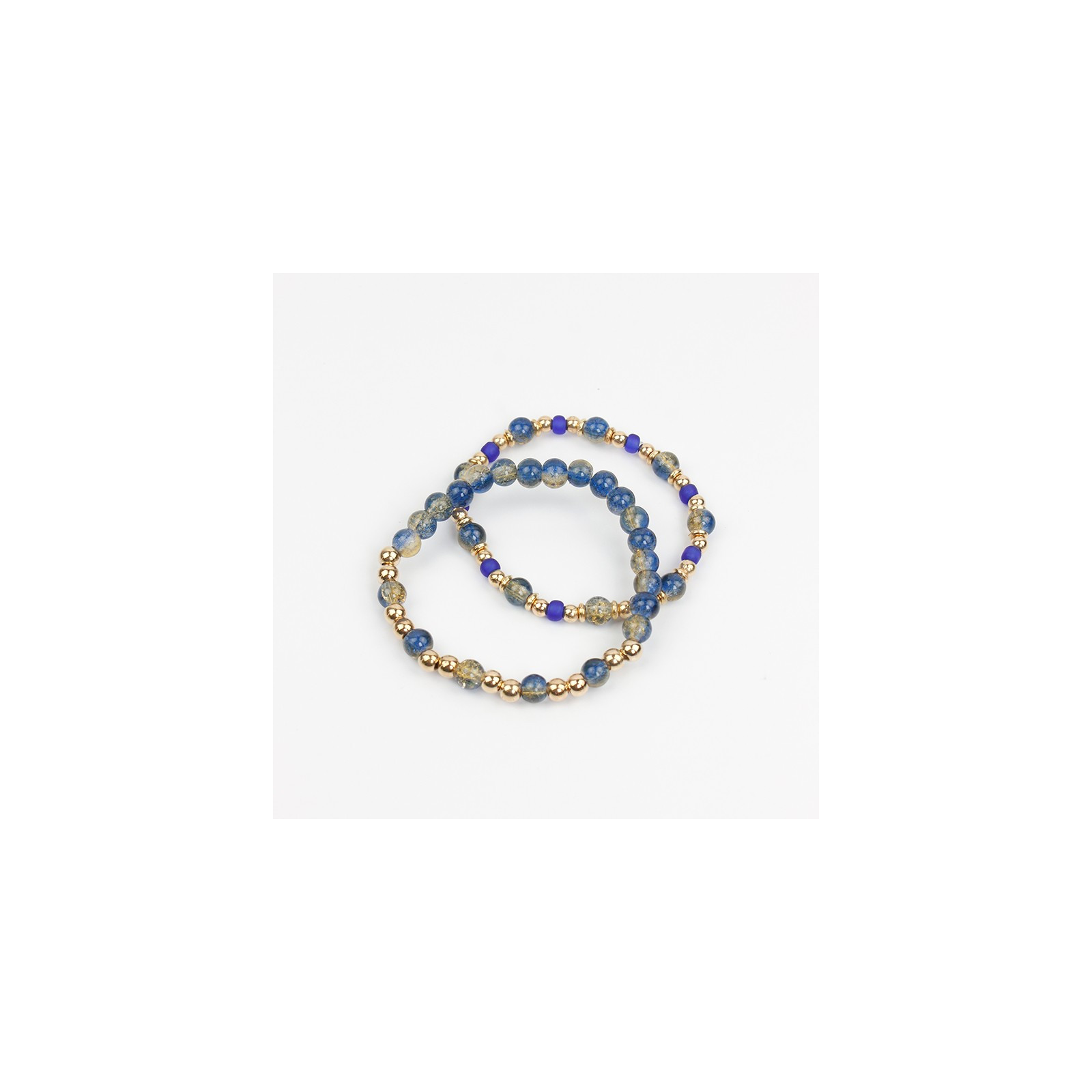 Set de dos pulseras elásticas elaboradas en bolitas de vidrio diferenciadas, combinadas con piezas pasantes de CCB.