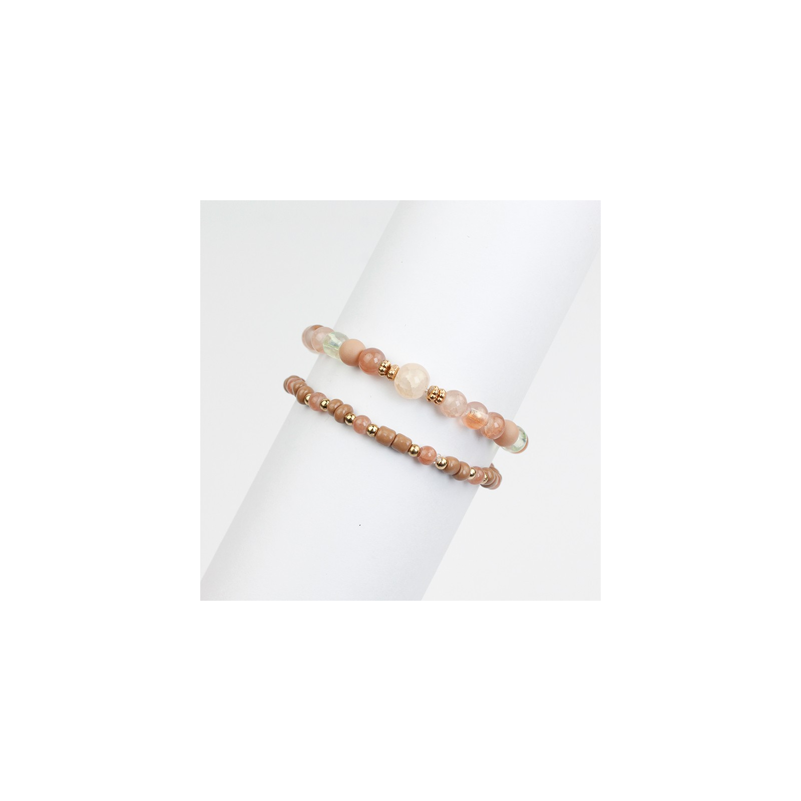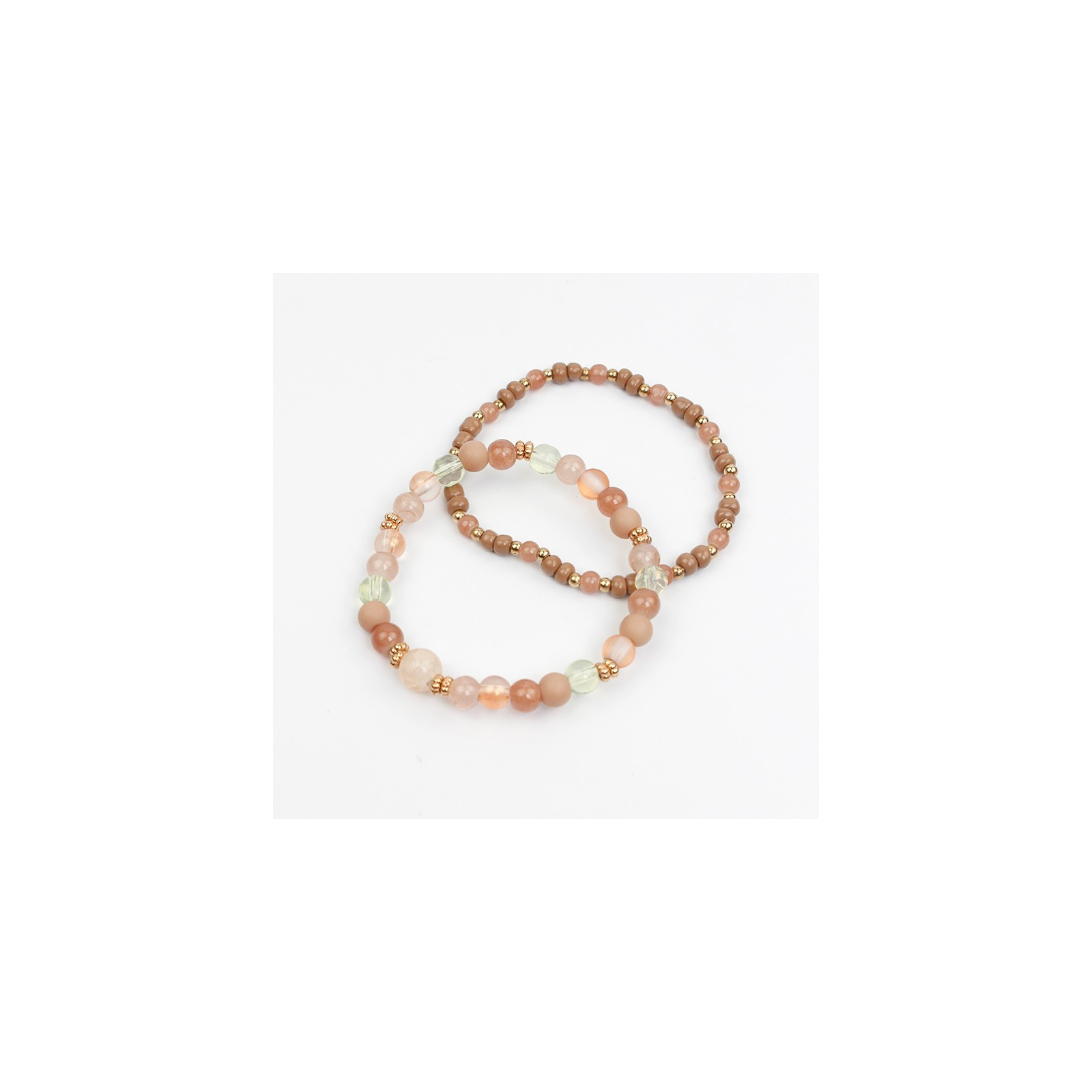 Set de dos pulseras elásticas de bolitas de vidrio diferenciadas, mostacillas y piezas pasantes de CCB.