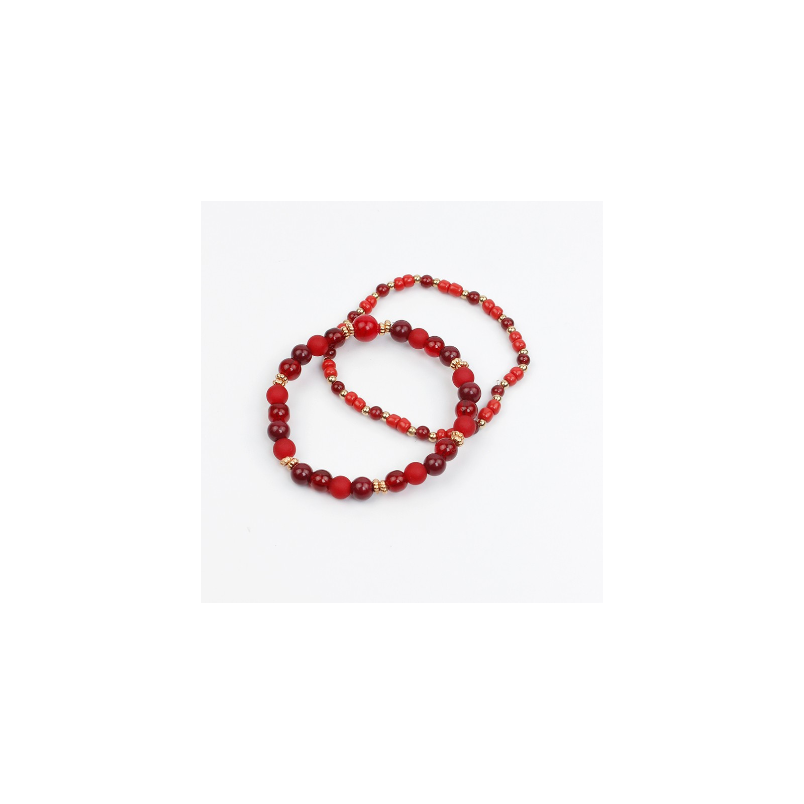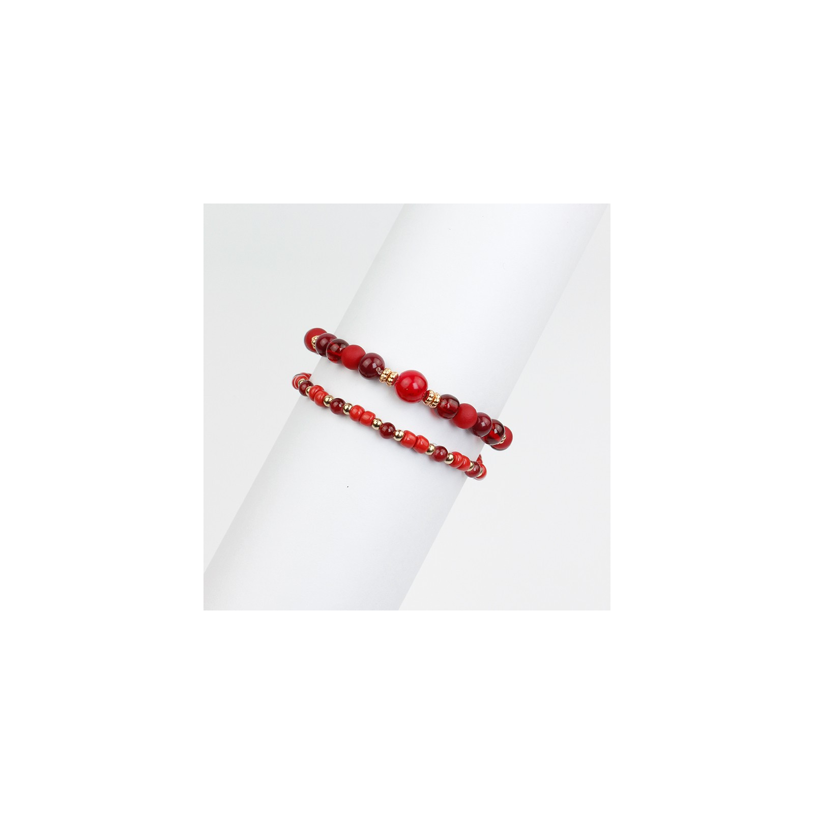 Set de dos pulseras elásticas de bolitas de vidrio diferenciadas, mostacillas y piezas pasantes de CCB.