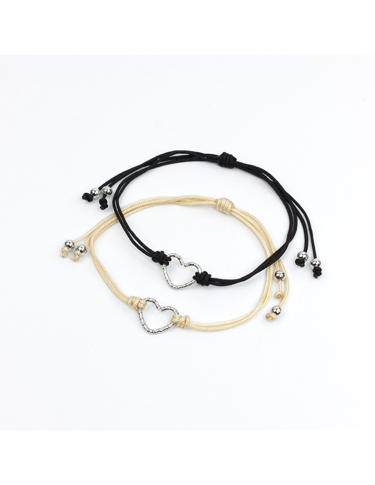 Set de dos pulseras de hilo, con dije en forma de corazón y nudos macramé exclusivos.