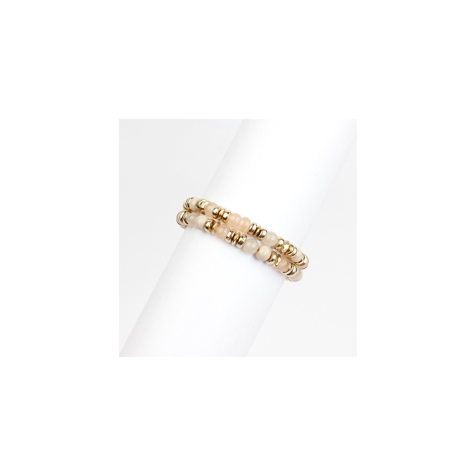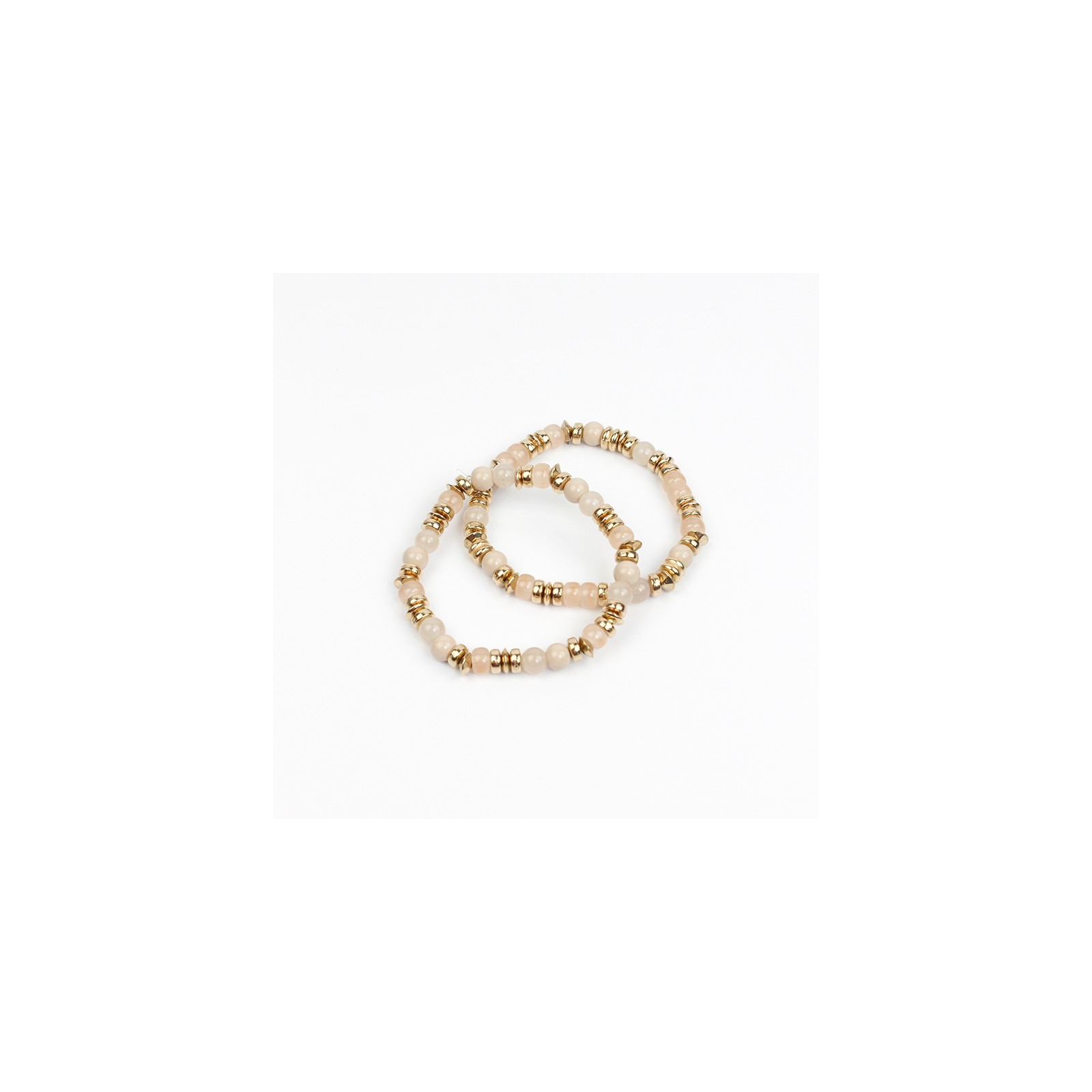 Set de dos pulseras elásticas de bolitas de vidrio marmoladas combinadas con piezas pasantes de CCB.