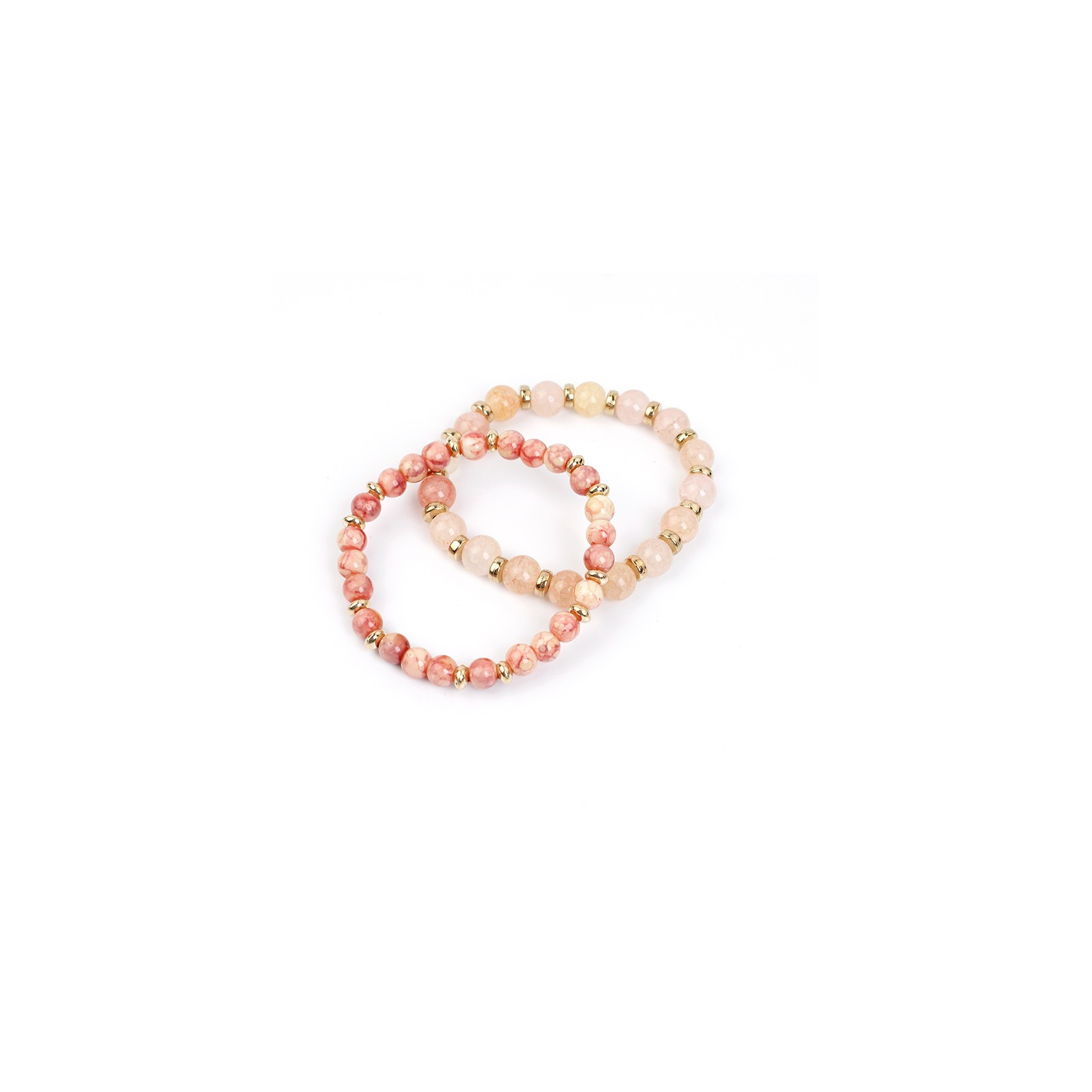 Set de dos pulseras elásticas de bolitas de vidrio craqueladas combinadas con bolitas de vidrio marmoladas y pasantes de CCB.