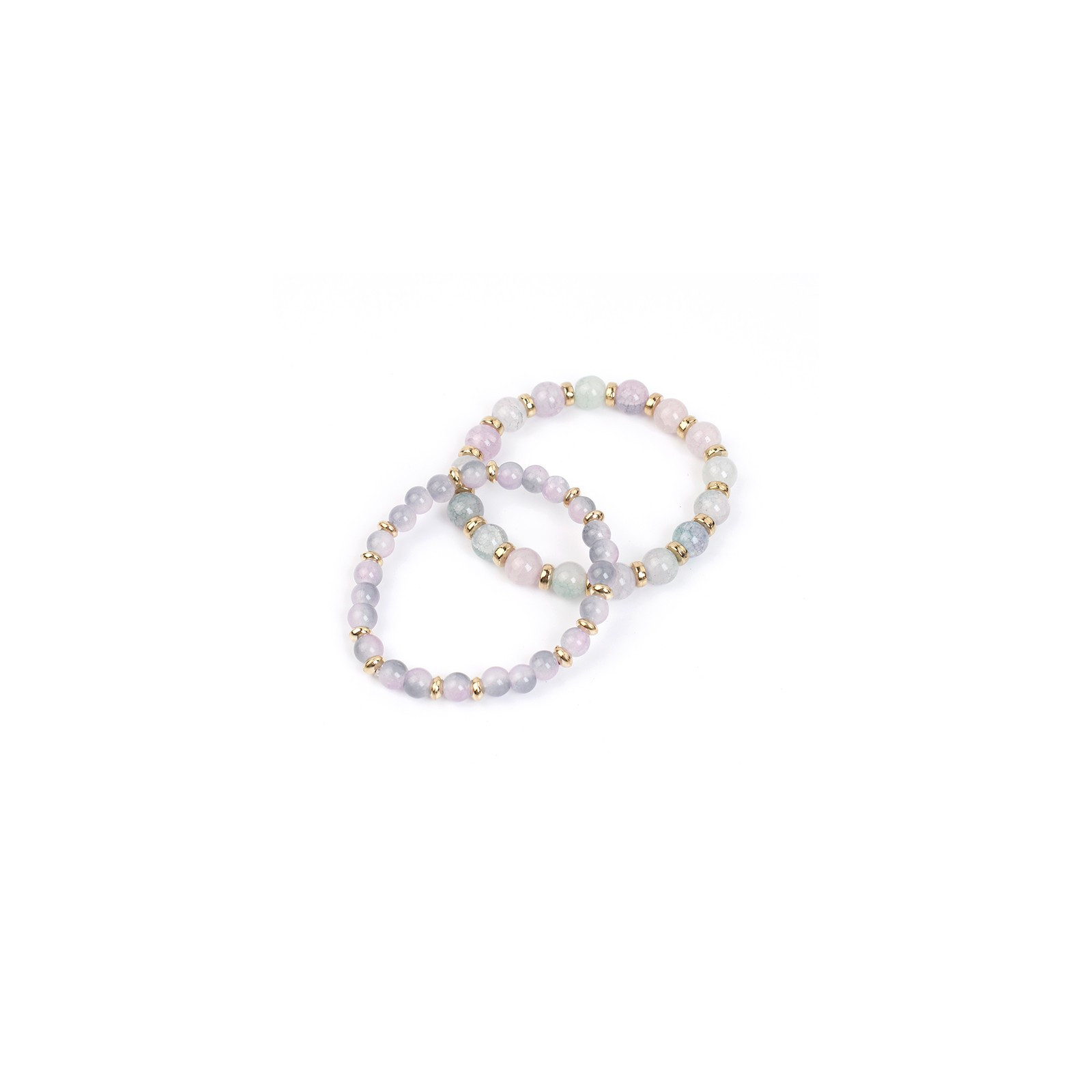 Set de dos pulseras elásticas de bolitas de vidrio craqueladas combinadas con bolitas de vidrio marmoladas y pasantes de CCB.