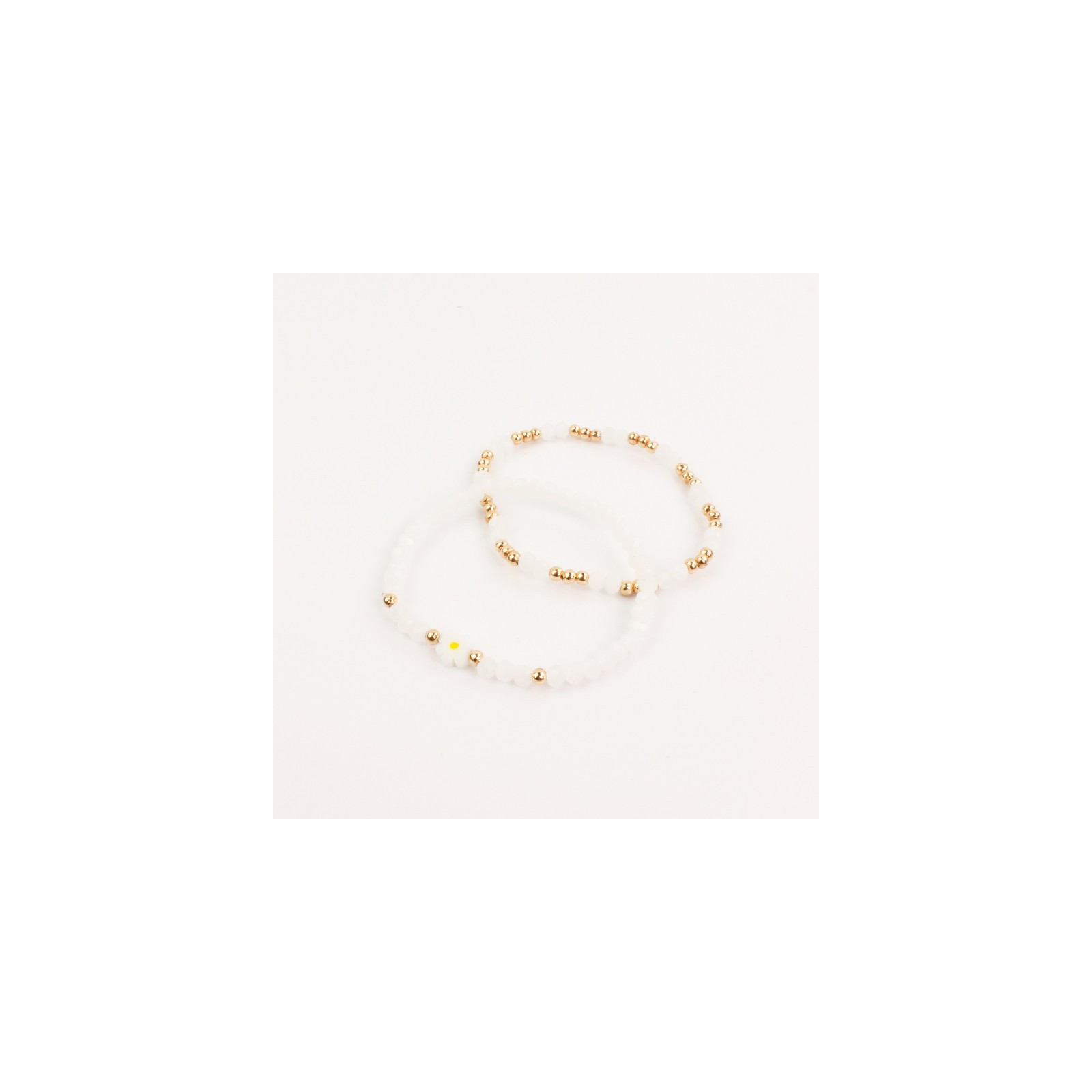 Set de dos pulseras de roca de cristal con dije exclusivos de vidrio en forma de flor.