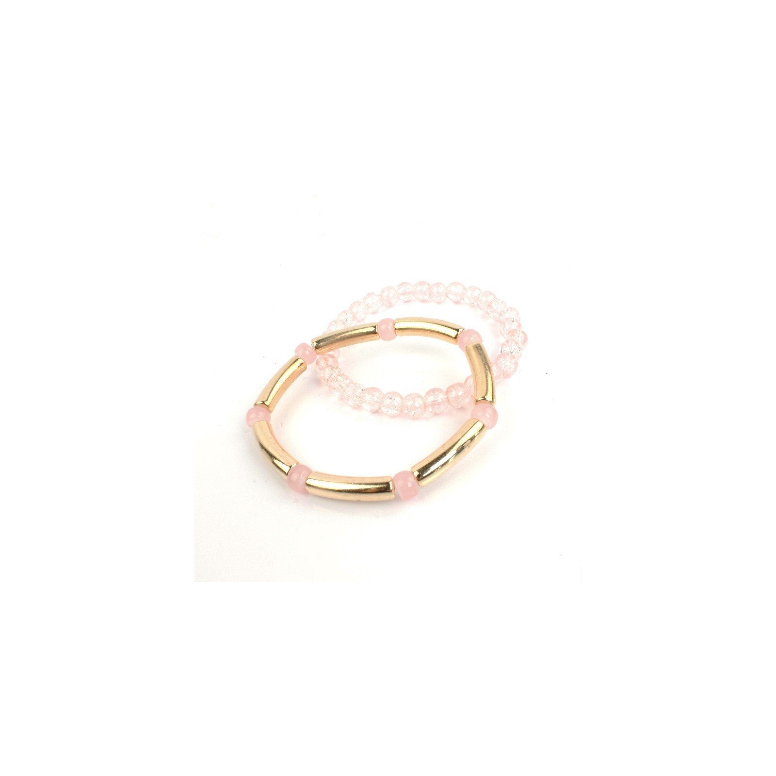 Set de dos pulseras elásticas de bolitas de vidrio diferenciadas, una de ellas combinadas con piezas pasantes de CCB dorado.