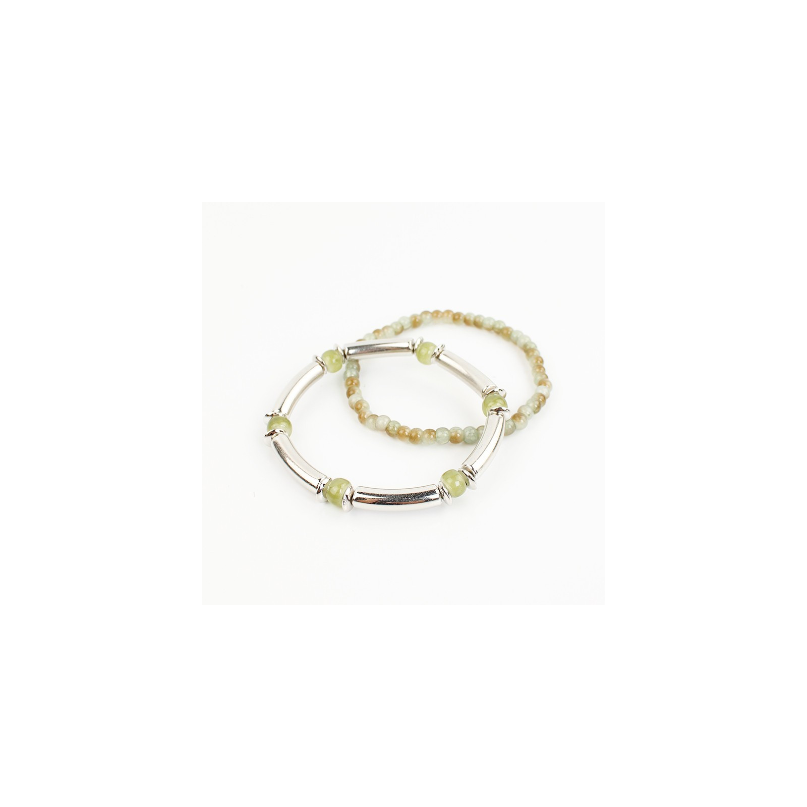Set de dos pulseras elásticas de rocas de cristal combinadas con piezas pasantes de CCB.