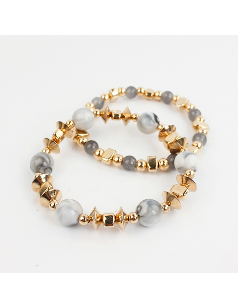 Set de dos pulseras elásticas de piezas acrílicas diferenciadas, bolitas de vidrio exclusivas y piezas pasantes de CCB.