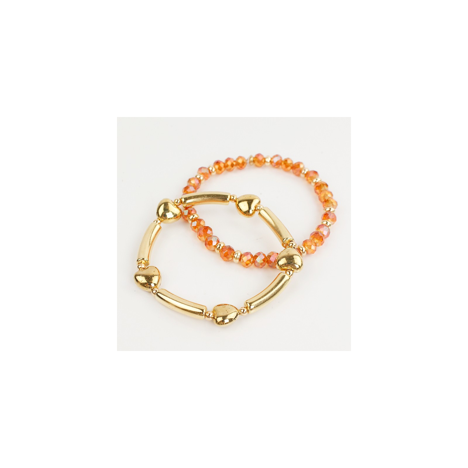Set de dos pulseras elásticas de roca de cristal con piezas exclusivas de ccb dorado.