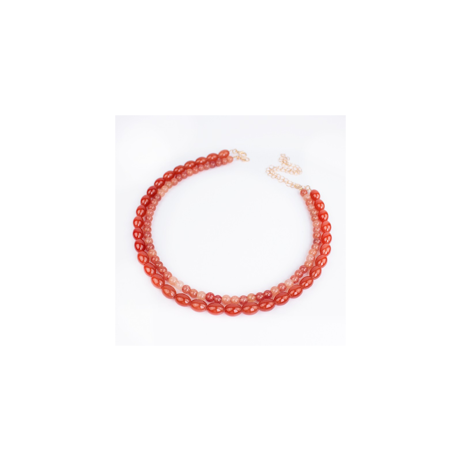 Set de dos collares flexibles de lenga, enhebrados con cuentas y bolitas de vidrio energético.