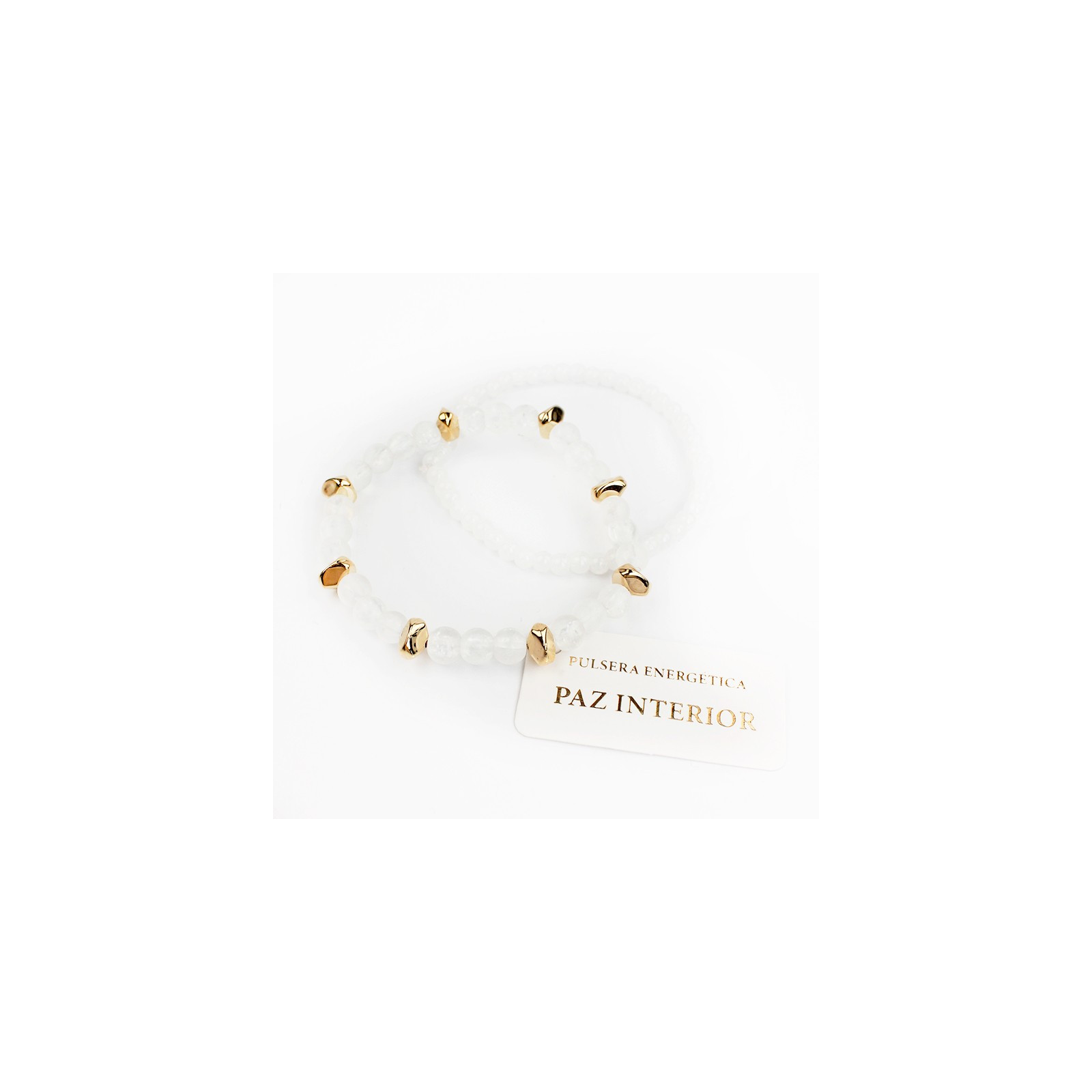 Set de dos pulseras elásticas de bolitas de vidrio energéticas diferenciadas, una de ellas combinadas con piezas pasantes de CCB dorado.