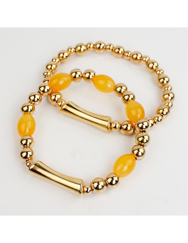 Set de dos pulseras elásticas de cuentas doradas de CCB combinadas con piezas de vidrio exclusivas.