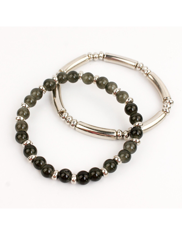 Set de dos pulseras elásticas de bolitas de vidrio diferenciada, combinadas con separadores de CCB y otra de piezas exclusivas de CCB.