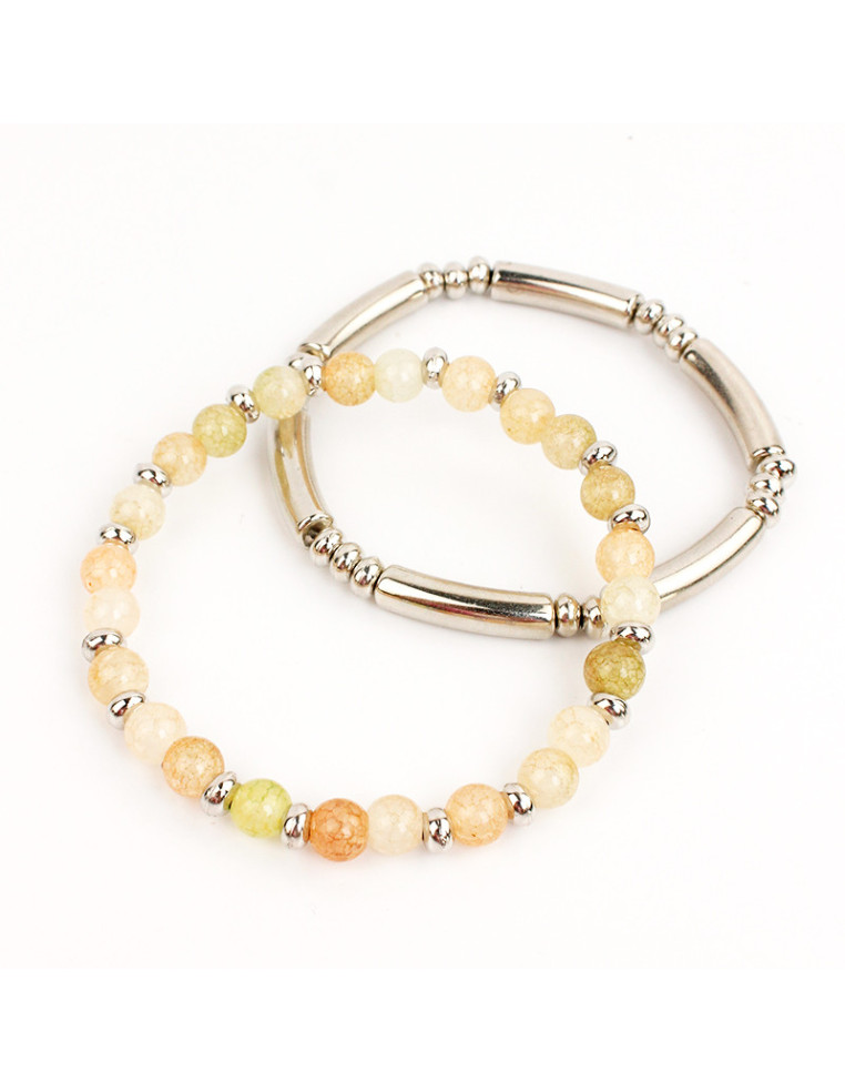 Set de dos pulseras elásticas de bolitas de vidrio diferenciada, combinadas con separadores de CCB y otra de piezas exclusivas de CCB.