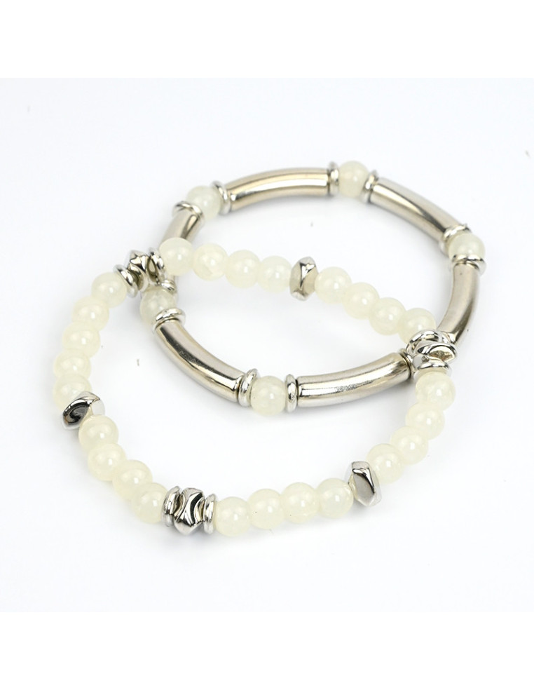 Set de dos pulseras elásticas, de bolitas de vidrio exclusivas, combinadas con piezas diferenciadas de CCB.