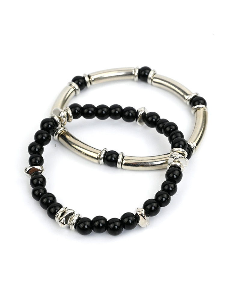 Set de dos pulseras elásticas, de bolitas de vidrio exclusivas, combinadas con piezas diferenciadas de CCB.