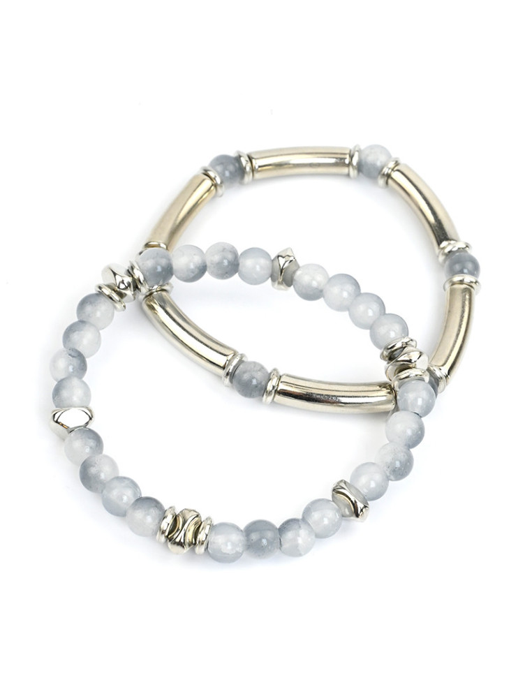 Set de dos pulseras elásticas, de bolitas de vidrio exclusivas, combinadas con piezas diferenciadas de CCB.