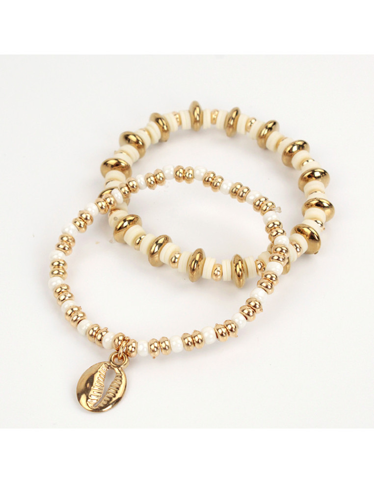 Set de dos pulseras elásticas de mostacillas combinadas con piezas de CCB, fimo y dije de fundición.