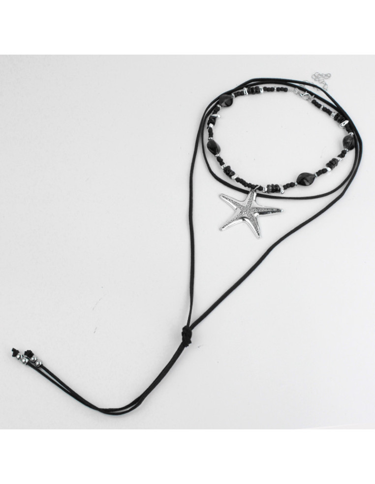 Set de dos collares, uno flexible de lenga enhebrada con mostacillas, piezas  de acrílico, separadores de CCB y dije de fundición.