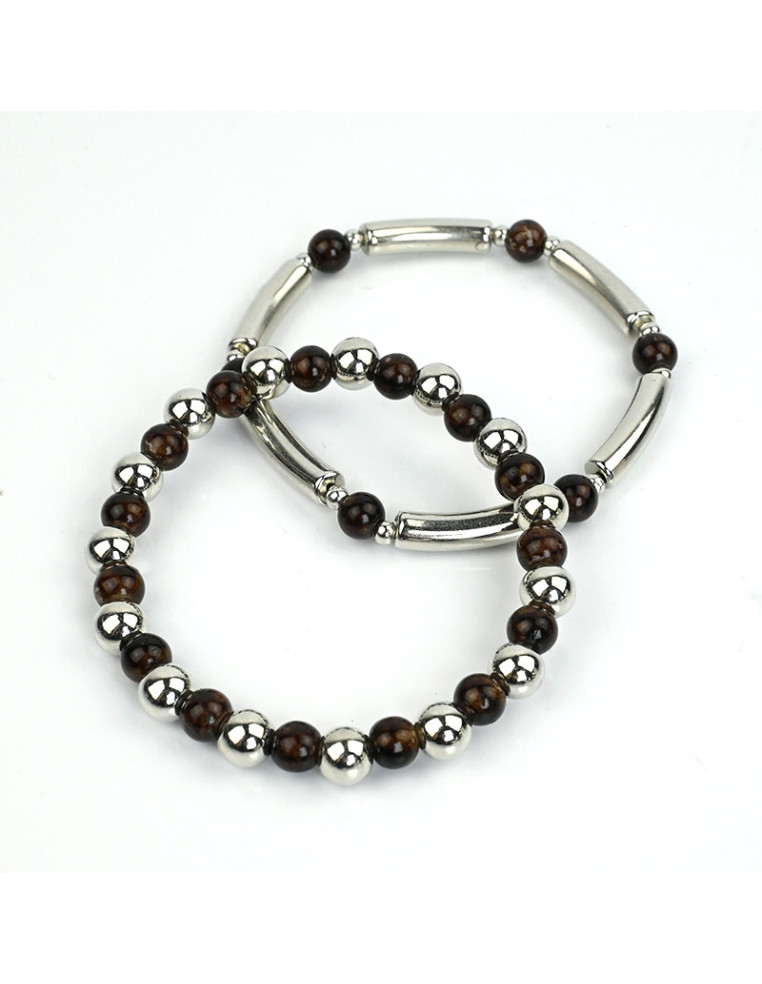 Set de dos pulseras elásticas de bolitas de vidrio diferenciadas, combinadas con bolitas y separadores de CCB.