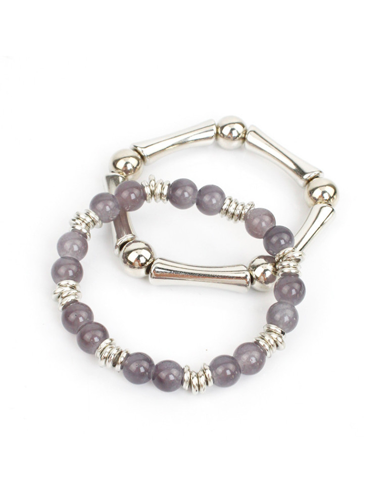 Set de dos pulseras elásticas de bolitas de vidrio diferenciadas, combinadas con piezas de CCB, otra de tubos exclusivos de CCB.