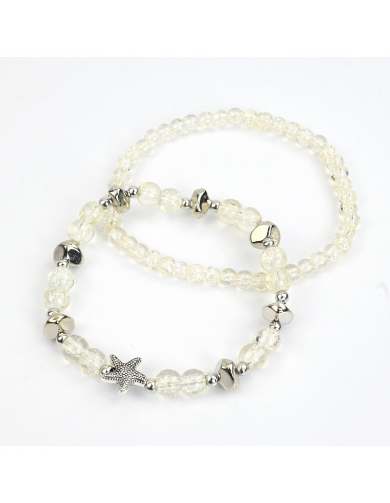 Set de dos pulseras elásticas de bolitas de vidrio diferenciadas, combinadas con separadores de CCB y dije pasante