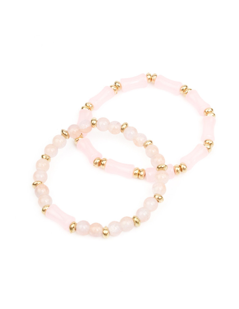 Set de dos pulseras elásticas de cuentas de vidrio y bolitas de vidrio.