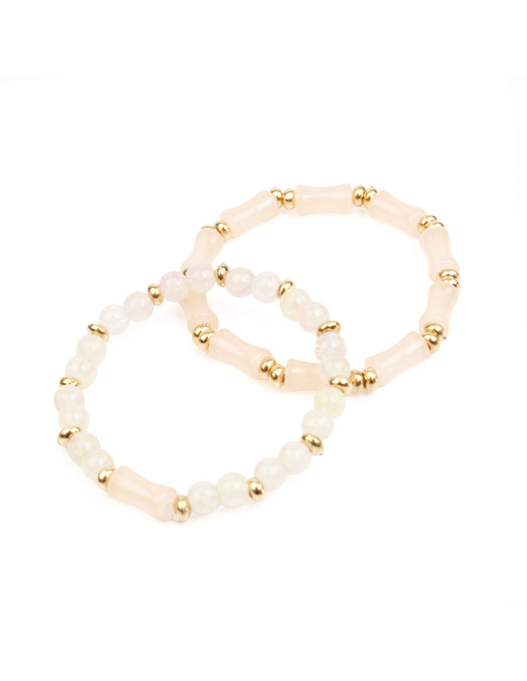 Set de dos pulseras elásticas de cuentas de vidrio y bolitas de vidrio.