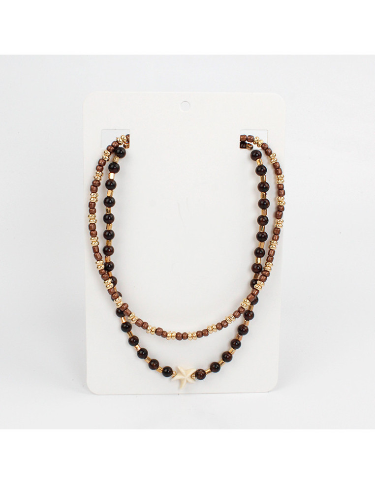 Collar doble de lenga, con bolitas de vidrio, mostacillas, pasantes de CCB y dije de roca reconstituida.