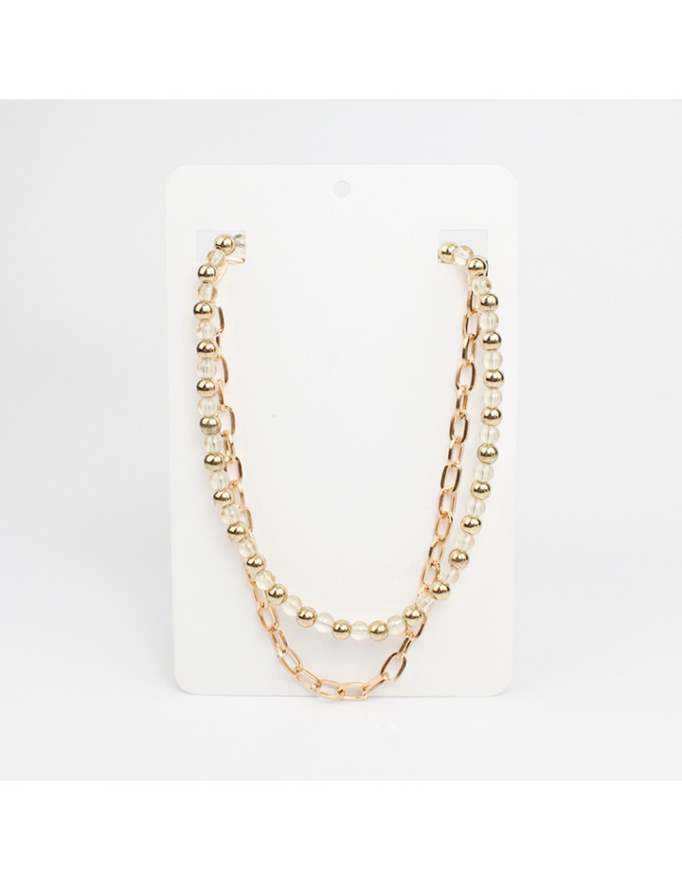 Collar doble de cadena y lenga flexible con dijes de CCB y donas acrílicas exclusivas.