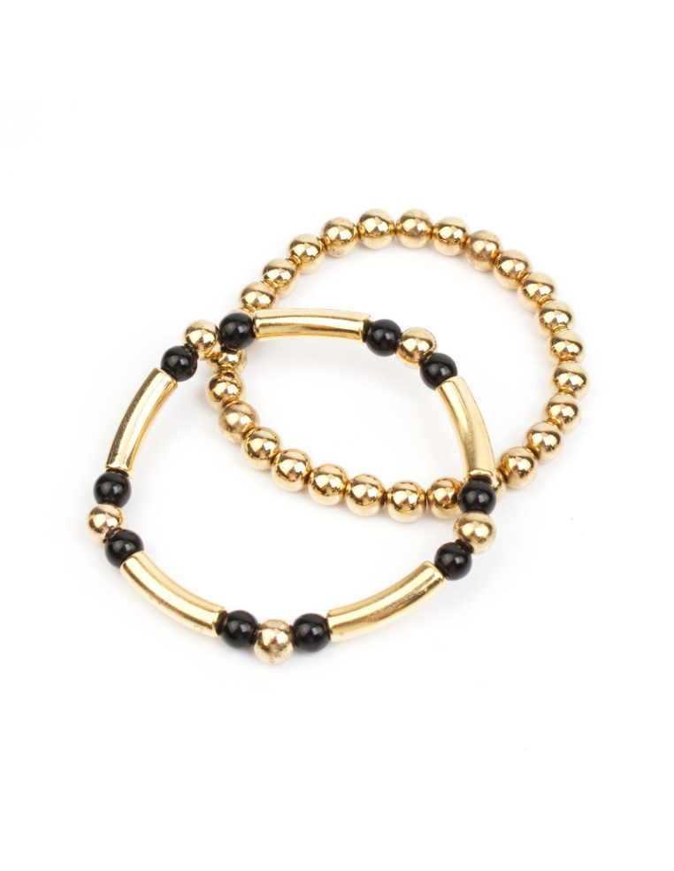 Set de dos pulseras elásticas de bolitas de vidrio con piezas de CCB.