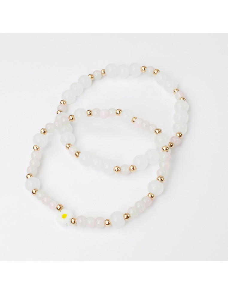 Set de dos pulseras elásticas de bolitas de vidrio, con margarita de vidrio y pasantes de CCB.