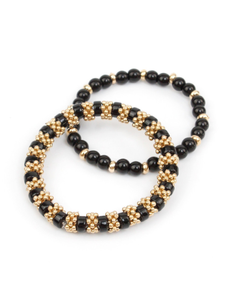 Set de dos pulseras elásticas de cuentas de vidrio, con piezas pasantes de CCB.