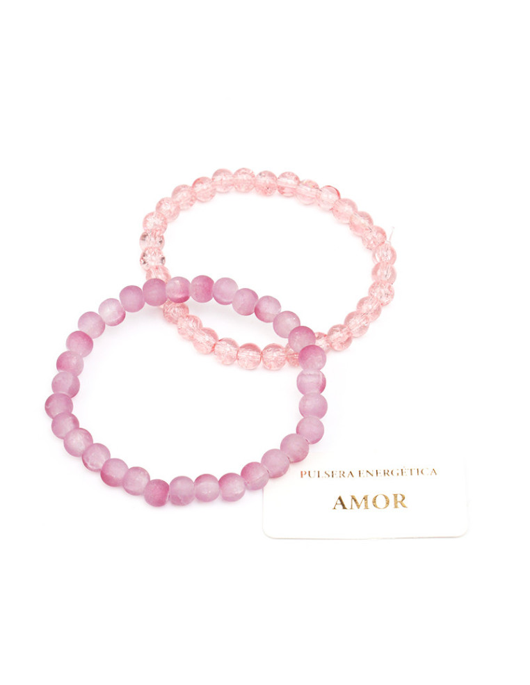 Set de dos pulseras elásticas de bolitas de vidrio energéticas.