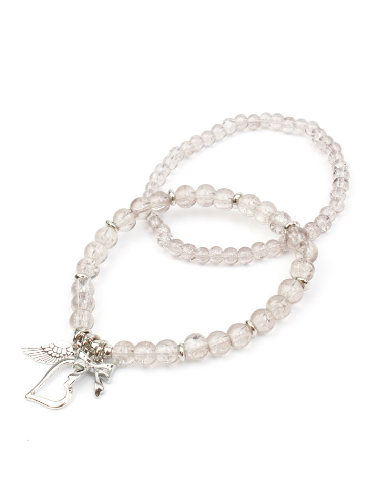 Set de dos pulseras elásticas, de bolitas de vidrio, separadores de CCB y dijes de fundición.