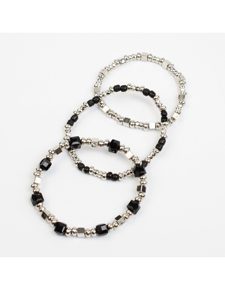 Set de tres pulseras elásticas de rocas de cristal cuadradas, mostacillas y pasantes de CCB.