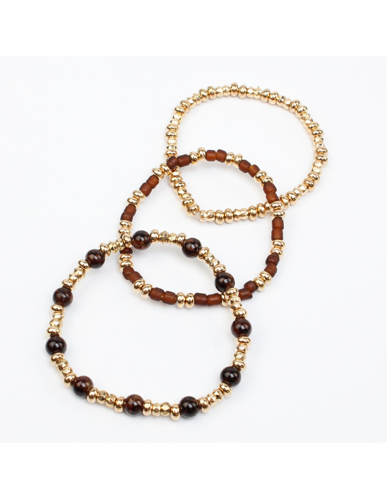 Set de tres pulseras elásticas de bolitas de vidrio, con mostacillas y pasantes de CCB.