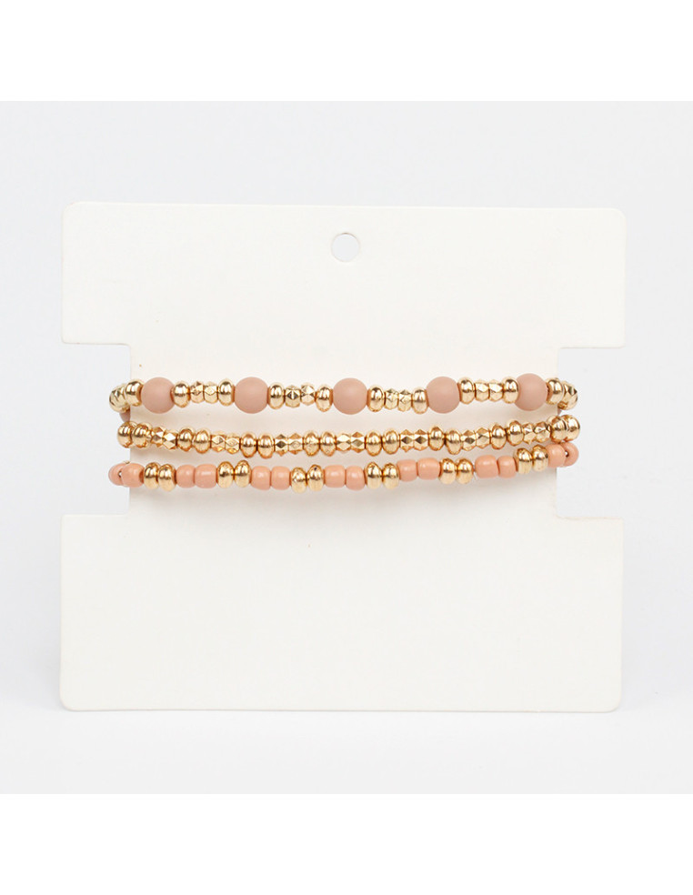 Set de tres pulseras elásticas de bolitas de vidrio, con mostacillas y pasantes de CCB.