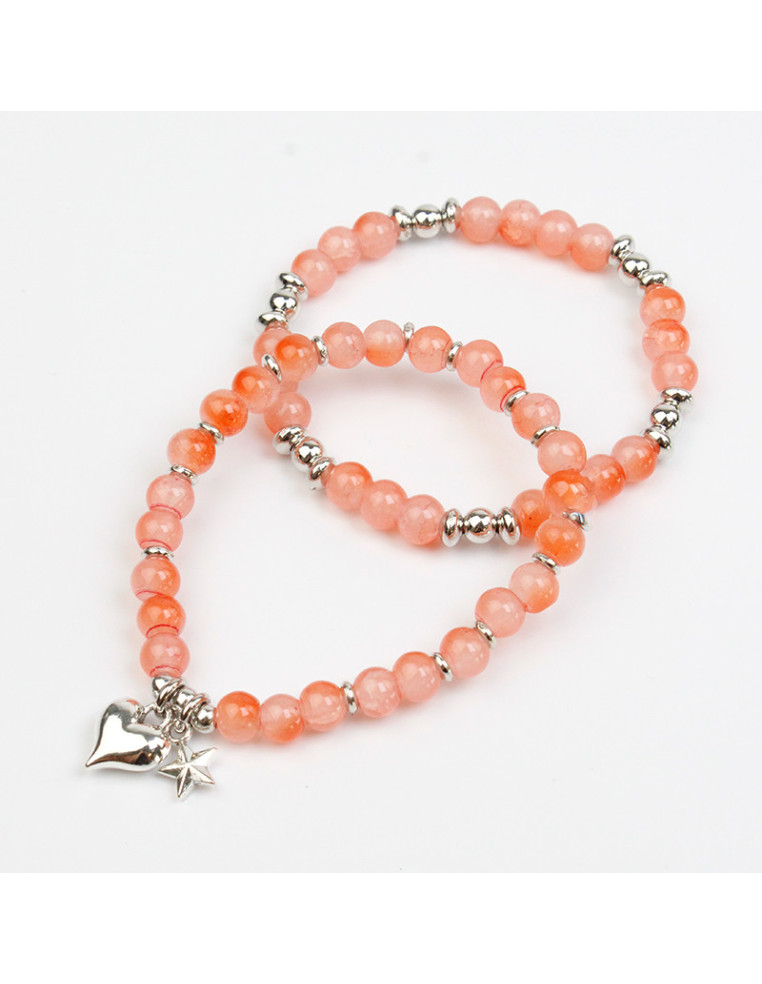 Set de dos pulseras de bolitas de vidrio, pasantes de CCB y dijes de fundición.