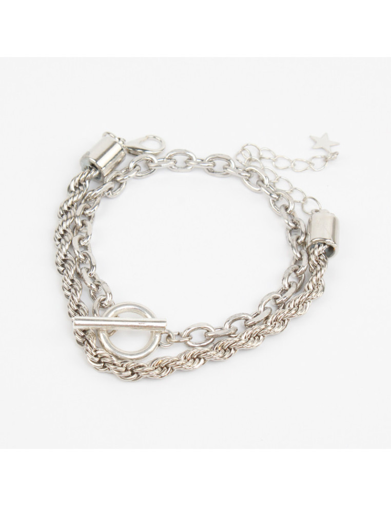 Set de dos pulseras de cadenas. Medidas: 18cm de largo, con cierre marinero, 16cm de largo y 5cm de enganche.