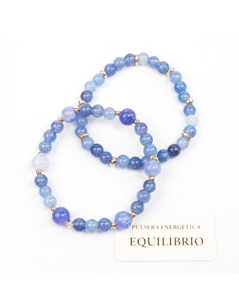 Set de dos pulseras de bolitas de vidrio energéticas con pasantes de CCB dorados.