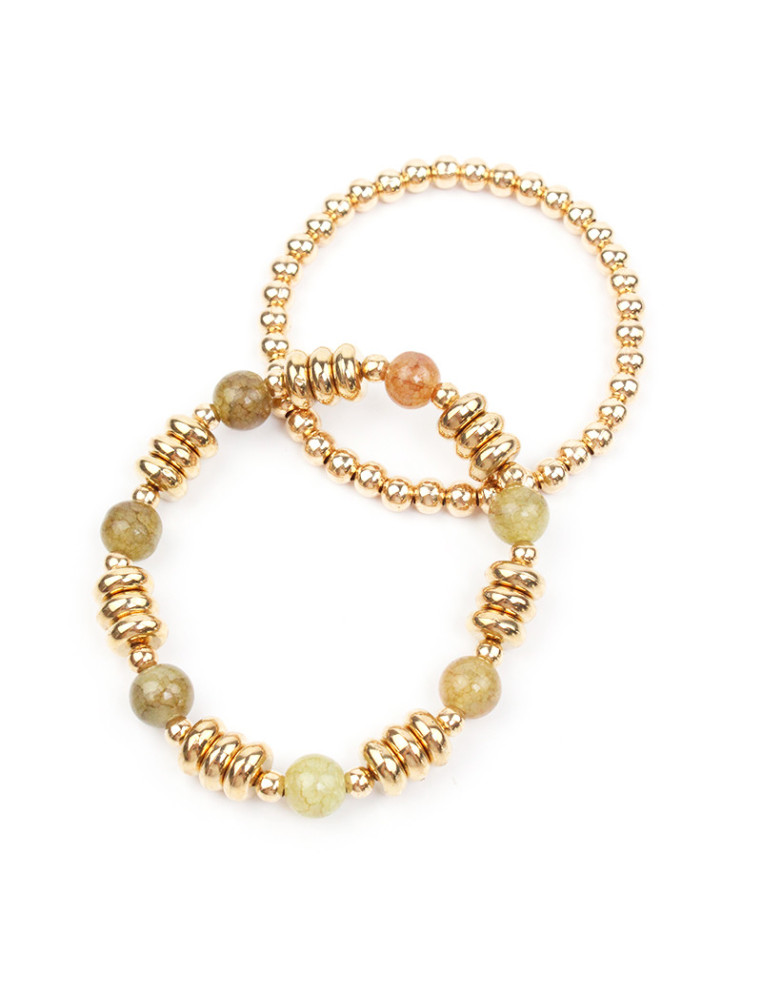 Set de dos pulseras elásticas de bolitas de vidrio, pasantes de CCB dorados