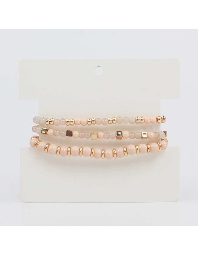 Set de tres pulseras elásticas de bolitas de vidrio, y pasantes de CCB.