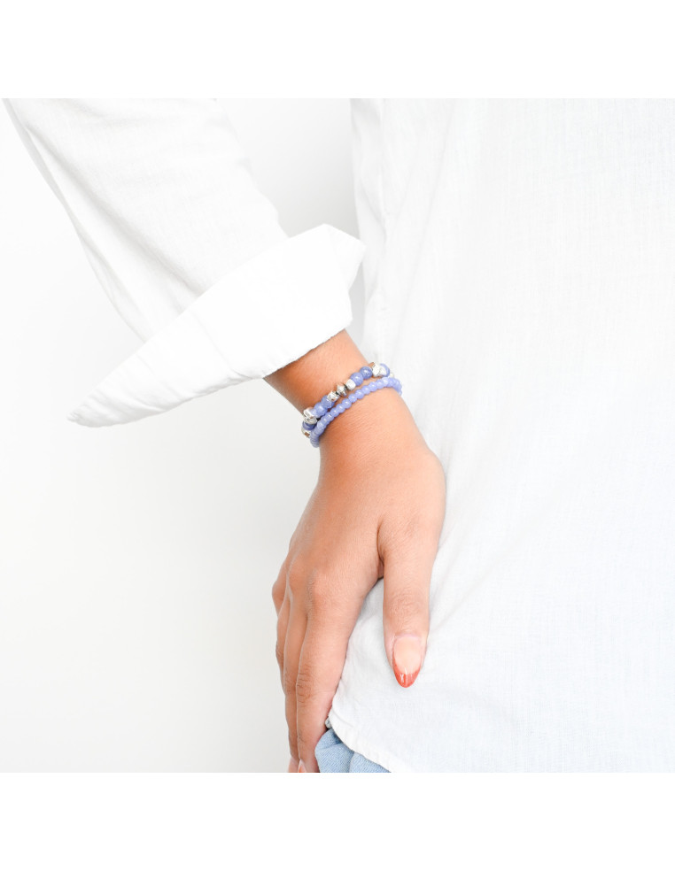 Set de dos pulseras elásticas de bolitas de vidrio y pasantes de CCB níquel.