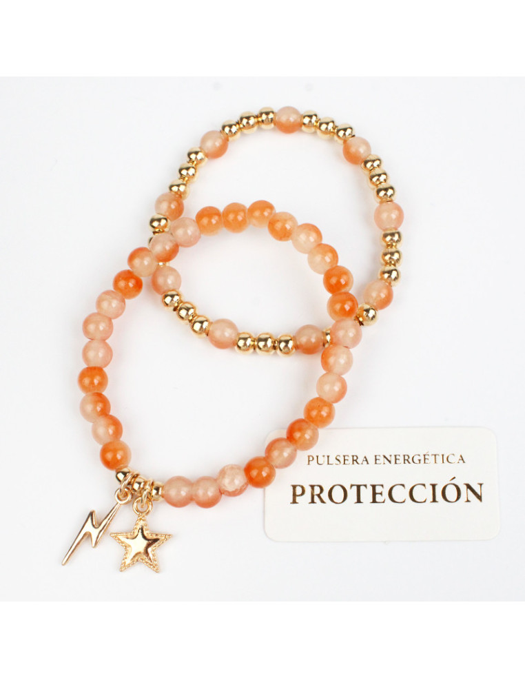 Set de dos pulseras de bolitas energéticas, con separadores de CCB y dijes de fundición.
