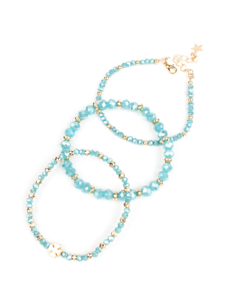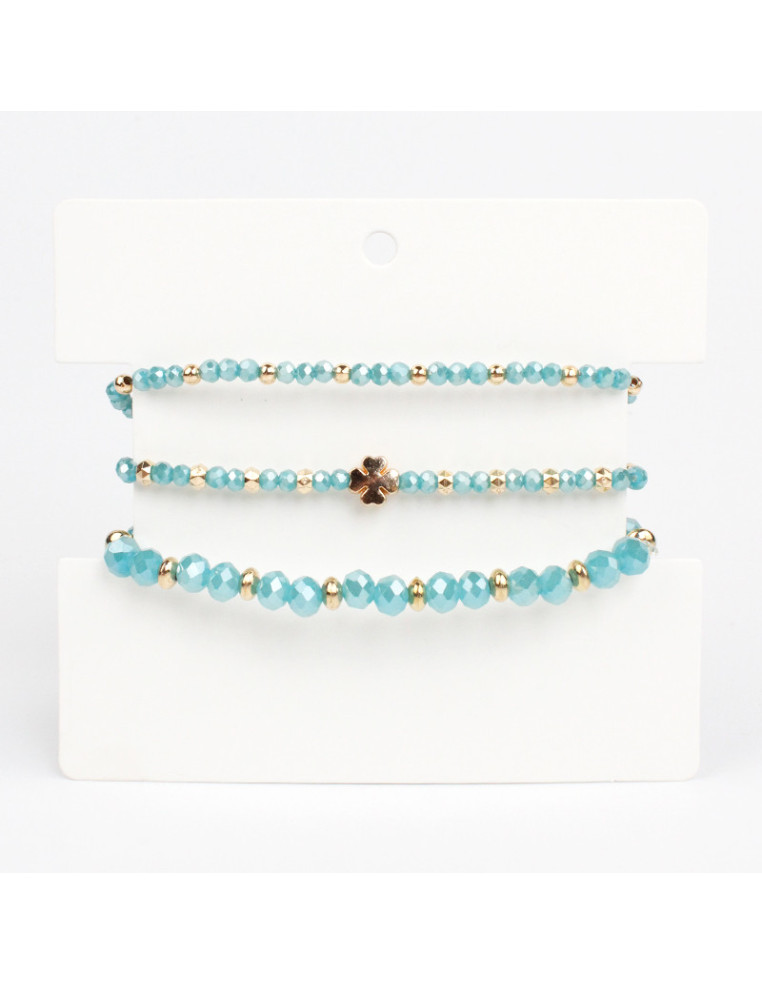 Set de tres pulseras, dos elásticas de rocas de cristal y separadores de CCB y un de lenga.