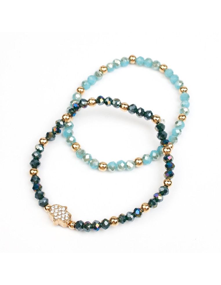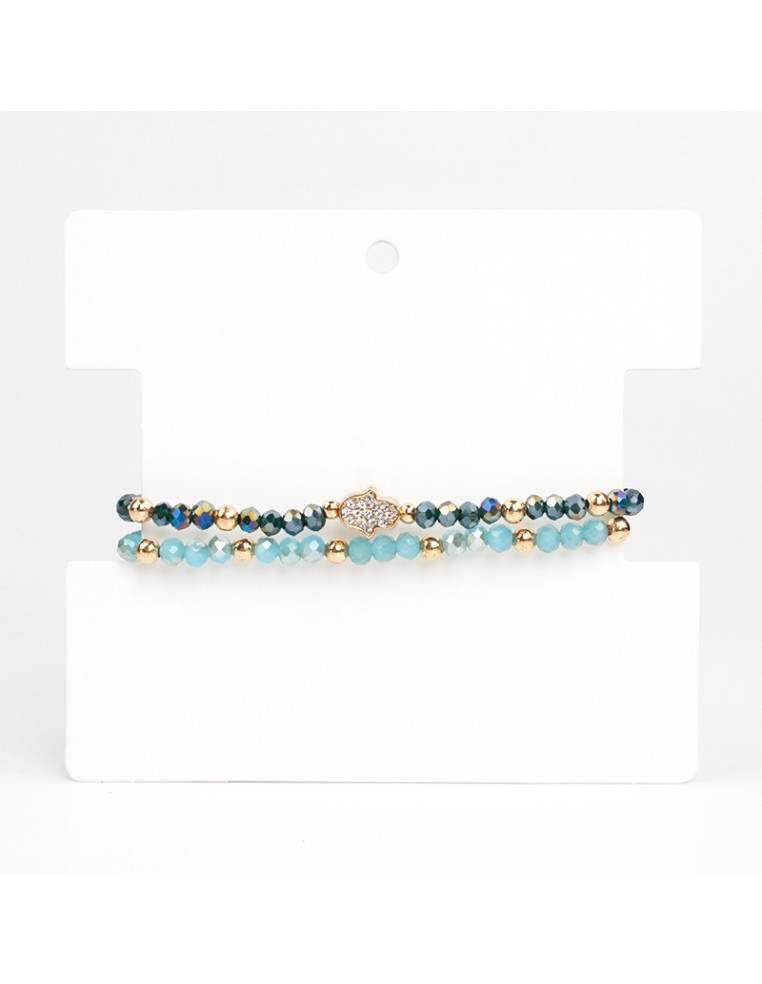 Set de dos pulseras elásticas de rocas de cristal, pasantes de CCB  dije de strass.